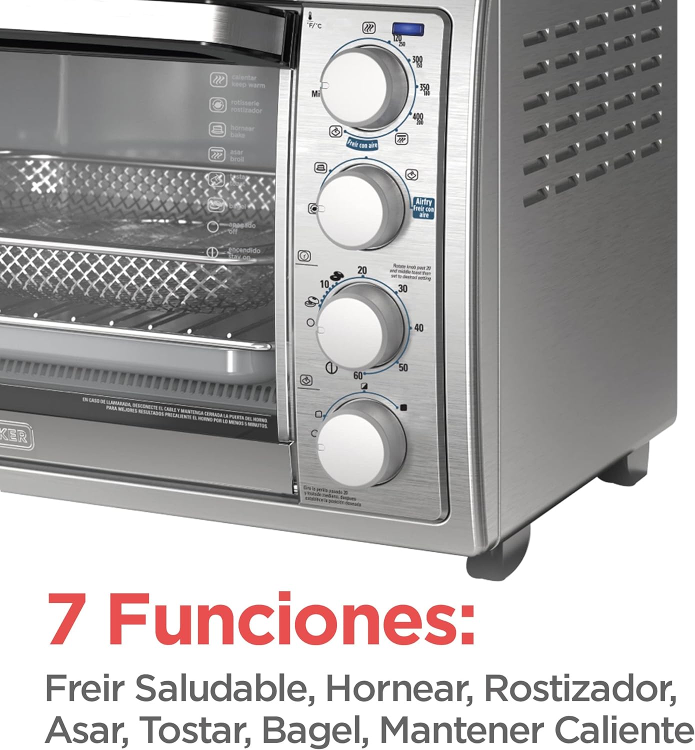 - 7 Funciones: Freír con Aire, rostizar, Hornear, Asar, Tostar y más