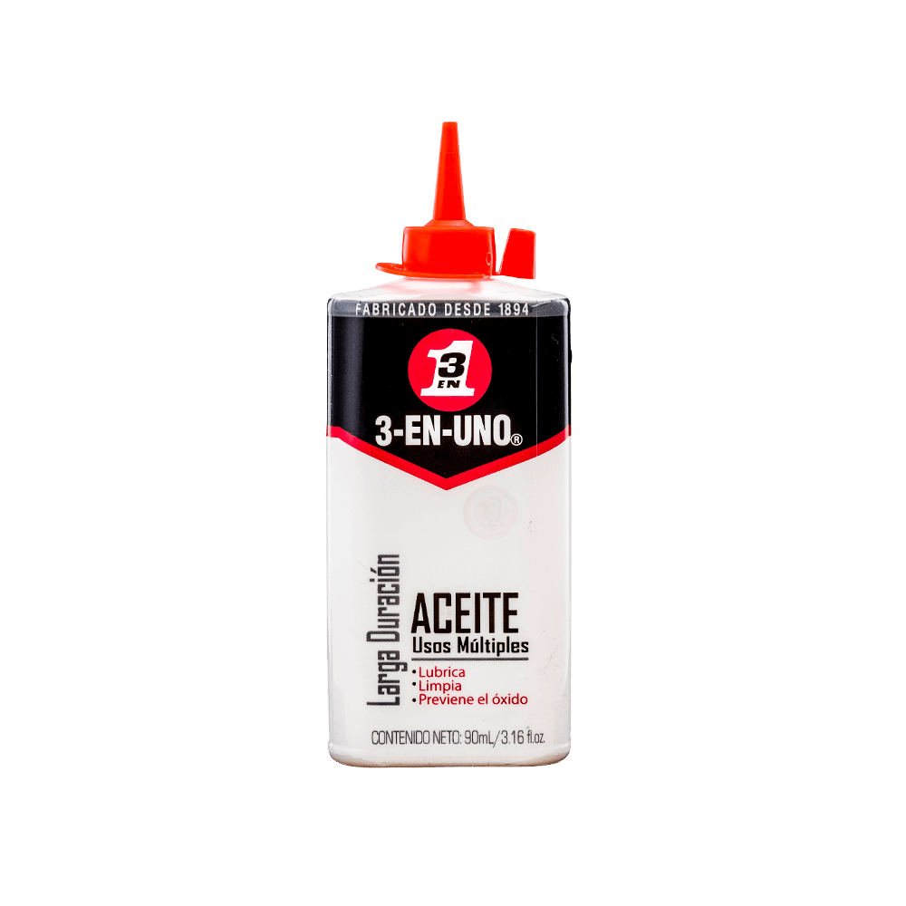 3-EN-UNO® ORIGINAL es el famoso y auténtico aceite de múltiples usos que sirve para todo. Su fórmula a base de aceite mineral lubrica eficazmente los mecanismos, elimina los chirridos, limpia el metal y protege contra el óxido y la corrosión.