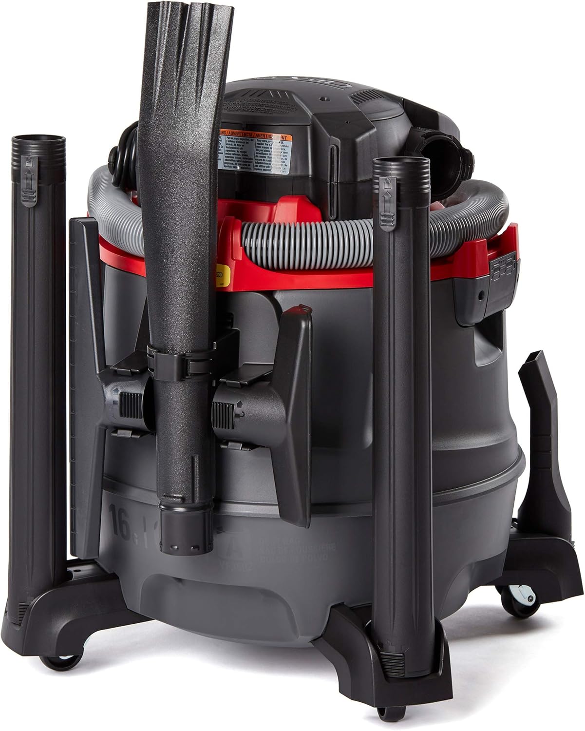 La aspiradora profesional en seco y húmedo modelo RT1600 de Ridgid es una aspiradora húmeda y seca de 16 galones con un soplador desmontable que ofrece dos mejores herramientas de su clase en una. La manguera profesional de bloqueo premium de 8 pies no se suelta durante el uso y es 4 veces más duradera que una manguera estándar. La gran capacidad, la construcción robusta y la excelente movilidad son ideales para uso profesional, contratista e industrial.