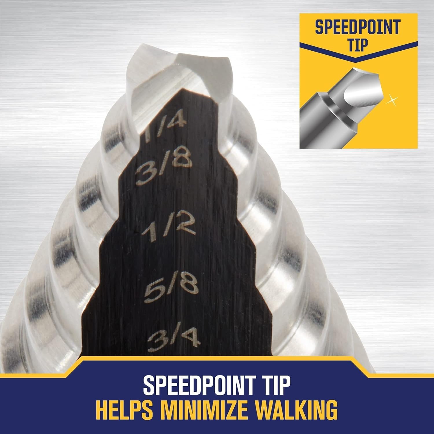 Broca escalonada para chapa metálica ofrece 10 tamaños de agujeros diferentes en una sola broca, de 1/4″ a 1-3/8″ en incrementos de 1/8″. Ideal para perforar agujeros redondos verdaderos con acabado suave y limpio en una variedad de materiales como chapa, aluminio, fibra de vidrio, plásticos, plexiglás y madera. La punta SpeedPoint penetra rápidamente, evita «caminar» y elimina la necesidad de un agujero piloto/arranque. El vástago hexagonal de 1/2 pulgada proporciona un agarre seguro en el portabrocas Los tamaños permanentes grabados con láser dentro de la flauta son fáciles de leer para un control preciso durante el proceso de ampliación del agujero.