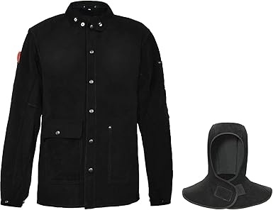 • Cuero retardante de llama de alta calidad. La chaqueta está hecha de cuero de vaca grueso dividido. Las fundas de cuero resistentes desde el cuello hasta la cintura proporcionan una gran cobertura y protección contra llamas y salpicaduras. 100% cuero es más duradero y más fuerte que la tela.