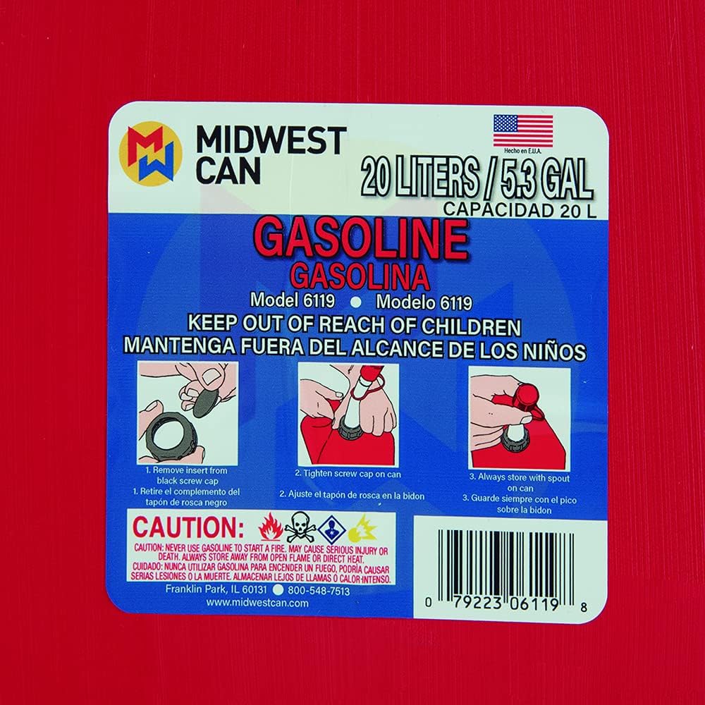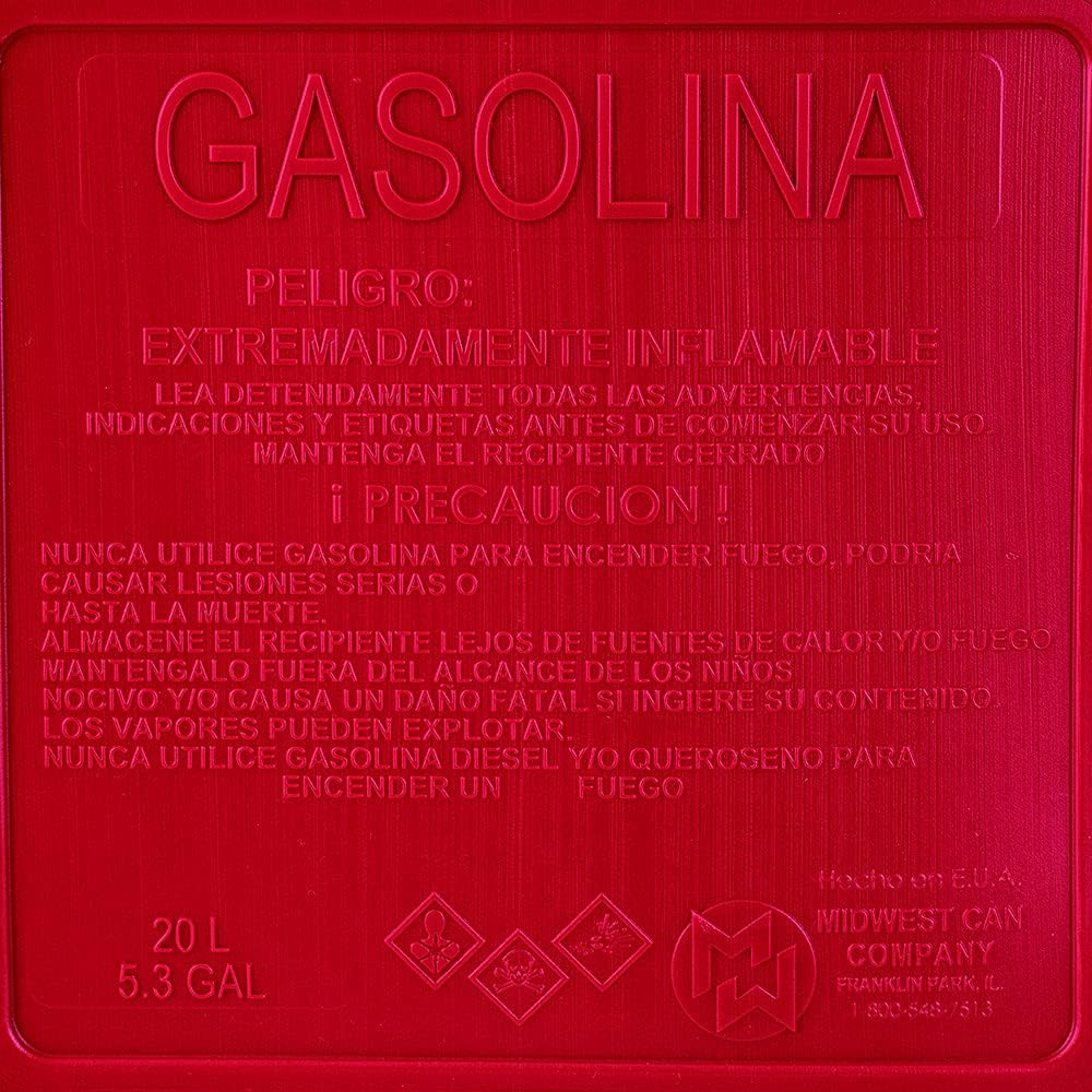 -Recipiente práctico para transportar gasolina con capacidad de 5 galones.